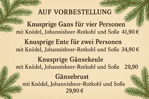 Wir freuen uns, Sie in unserem Hause begrüßen zu dürfen, und werden uns bemühen, das von Ihnen in uns gesetzte Vertrauen mit unseren hausgemachten Gerichten zufrieden zu stellen.
